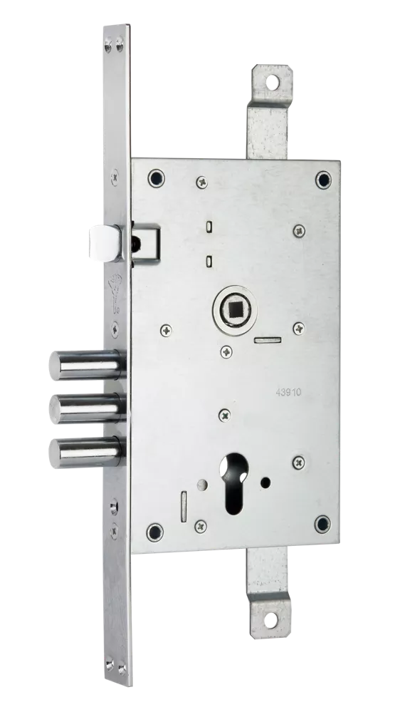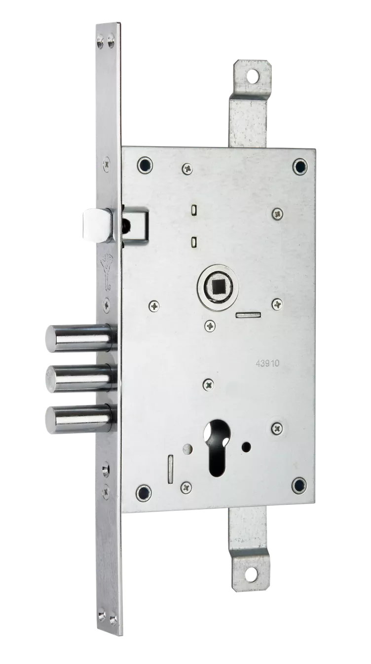 Multipoint security lock for heavy duty steel doors.