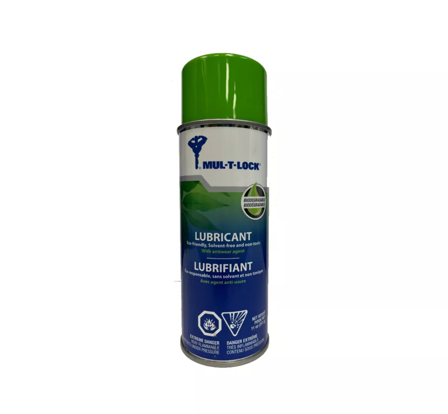 Mul-t-lock’s Biolubricant is a non-toxic, biodegradable product which will not harm the environment, contrary to petroleum-based lubricants. It has been tested by the CRIQ and it has been showcased by methodology CEC-L-33-A93 that this lubricant was fully biodegradable. Moreover, a toxicological analysis has demonstrated that Biolubricant was non-toxic before and after degradation of the product. This Biolubricant will not dry, will not crack and will not evaporate, producing a superior protection over a very long period of time.