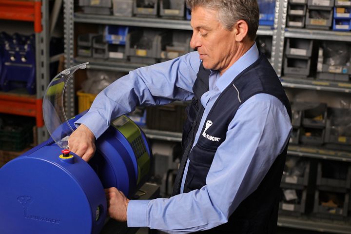Mul-T-Lock Machinery's compact manual key-cutting machine is a modern, high-precision, CE-certified machine that cuts Mul-T-Lock cut-to-code keys from the 7x7® and Integrator® series.