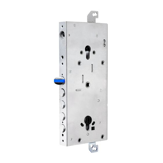 È disponibile nella versione con scrocco e 3 o 4 catenacci (in base alla loro interasse). Il cilindro è assicurato in posizione tramite un doppio sistema di fissaggio frontale e laterale.