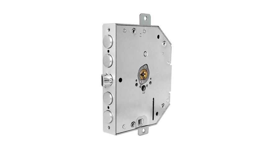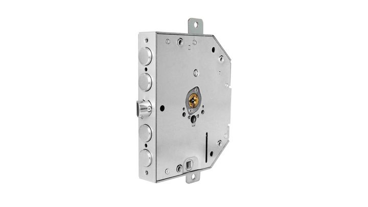 La serratura Omega Pro serie R ha lo scrocco posizionato al centro della serratura (in mezzo ai catenacci) ed è caratterizzata da un interasse di fissaggio di 72 mm e dall'entrata della maniglia di 23 mm.