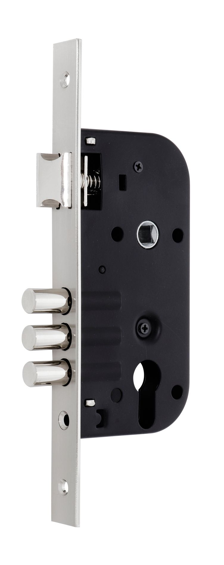 Activated by Euro cylinder with DIN cam. Double rotation of the cylinder 20 (10/10) mm stroke.